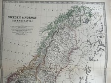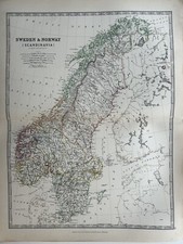 1884 Sweden & Norway Hand Coloured Original Antique Map by Johnston