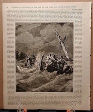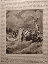 1884 - Vintage JESUS WALKING ON THE SEA Antique Bible Print from 1800s