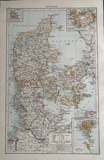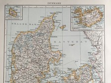 1896 Denmark Original Antique Map 125 Years Old