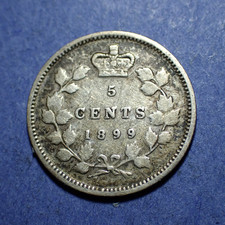 Up for sale is an 1899 Canada Five Cents coin. I grade it a Very Good. I am passionate about numismatics, having been a collector my whole life. I am also involved in several clubs and set up locally at shows.