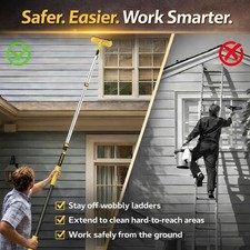 Clean High Windows Safely – No Ladder Needed: Clean hard-to-reach windows up to 18 feet high without stepping off the ground when the user is 6 FT tall.