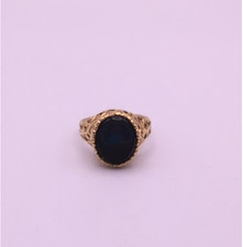 18K Heavy Gold Electroplate Ring with Black Gemstone
