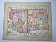 1903 ARIZONA & NEW MEXICO State Map Fm 1903 Peerless World Atlas SEE DESCRIP