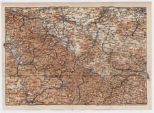 1904 ANTIQUE MAP THURINGIA GOTHA ERFURT WEIMAR ILMENAU SUHL THÜRINGEN GERMANY