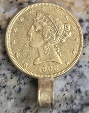 It has a jewelry loop soldered to the edge. The coin is in raw, uncertified condition. It is the last year of this type before the half eagles switched to the 'Indian head' type. Weight:8.36 grams.