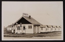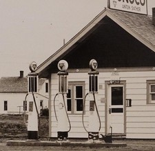 Please see all images... All Original Real Photo Post Card Not mailed Anton Sather's Conoco Station Early gas pumps Cabins Please see all images... All Original Real Photo Post Card Not mailed Anton Sather's Conoco Station Early gas pumps Cabins Vintage "as found" Condition Bend in upper right corner. A few blemishes on cover. In the angled light you can see the impression from the writing on back. Corner blunting & toning. SCROLL DOWN Click to enlarge See pictures for condition We will combine shipping on multiple purchases... PLEASE WAIT TO PAY UNTIL YOU RECEIVE OUR NEW COMBINED SHIPPING INVOICE. Please read the entire write-up.