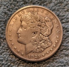 This is a 1921 Morgan Silver Dollar minted in San Francisco. This coin is ungraded and uncertified but it is in excellent condition with a high degree of luster and sharp features and lettering.