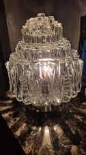 This 1930's Art Deco flush mount light table lamp features a medium size with a clear glass material. The lamp showcases the iconic Art Deco style, making it a beautiful and authentic antique original piece. With updated wiring, this lamp is not only stylish but also functional and safe for modern use. Perfect for adding a touch of vintage glamour to any room, this lamp is sure to be a conversation starter in any home or collection.