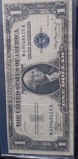 The product is a rare and collectible 1935 Double Date Blue Seal Silver Certificate Note. This error miscut note features a unique blue seal and is uncirculated, making it highly sought after by collectors. Originating from the United States, this $1 banknote holds historical significance and is a valuable addition to any numismatic collection.