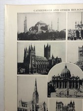 1949 Antique CATHEDRALS & RELIGIOUS EDIFICES Book Print - Webster's Dictionary