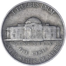 1950 D Jefferson Nickel. Grades Fine.