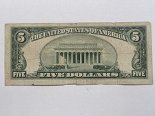 This is a series 1953 A $5 BLUE Seal Silver Certificate. Rough edge, etc., so it is CHEAP !!! Does NOT come with a holder.