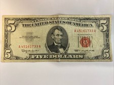1963 Five Dollar $5 Red Seal US Note Circulated. Shipped with USPS Ground Advantage.