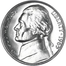1965 Jefferson Nickel. Gem Special Mint Set Coin. Fresh from US Mint Set.