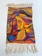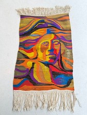 1970' MCM Space Age Carpet Rug Style Art Textile Woman Face Wall Panel Modernism