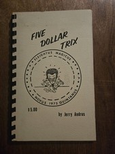 The product is a signed 1973 Five Dollar Trix paperback book by Jerry Andrus, focusing on the genre of magic. This collectible item likely contains tricks, illusions, and magical techniques that cater to those interested in fantasy, mythical, and magical themes. With the author's signature, this book may hold historical or personal significance for fans of magic and related fields. sold as is