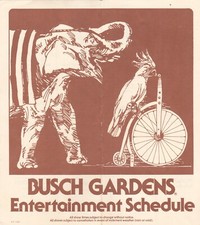 A 2 panel brochure for Busch Gardens. Size is 8 x 9" unfolded. Condition is very good with moderate wear.