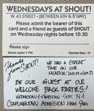 1980s-1990s SHOUT! Night Club NYC Tickets Passes 2 available As is. Good condition. Listing more. Ask questions or pics.