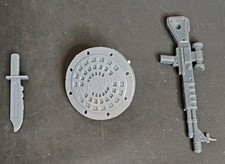 The 1988 TMNT Soft Head Rocksteady Figure is a vintage collectible from the Teenage Mutant Ninja Turtles franchise. This action figure of Rocksteady, a rhinoceros character, is 100% complete with his original accessories including a gun, knife, belt, and shield. With its nostalgic appeal and connection to the popular TV and movie series, this Playmates Toys product is a sought-after item for fans of the TMNT universe. The figure is pre-owned and has been well maintained. There are some spots on his back where the paint has worn off. His head has also stiffen with age, but otherwise he is in good condition. See pics for details.