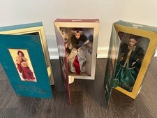 3 of the Hallmark Special Edition Holiday Barbies from the 90's, These Classic Barbies " Holiday Memories Barbie," "Yuletide Romance Barbie," and "Victorian Elegance Barbie," are rare to come by. Add these to your vintage doll collection! ( or just use them for your holiday decorations) Never removed from the original boxes.