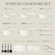 19Pcs Pots and Pans Set, Nonstick Cookware Set Detachable Handle, Induction Kitc