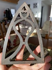 I believe this is mid to early 1800s or older. Early primitive square naive cast iron mold with no fine details. A nice early example! SO MANY CAST IRON FOOTED HOTPLATES TRIVETS FLAT SAD IRON STANDS ARE REPRODUCTION OF ANTIQUES, 9/10 times or more these are much newer and reproduced. I stumbled upon a collection of genuine original oldies not repro! AMERICANA Great finds and genuine original antique items IF YOU ARE LOOKING FOR THE LOOK OF THESE ITEMS BUT A LOW PRICE TRY THE LOWER QUALITY MUCH NEWER REPRODUCTIONS, they go between 10-20 bucks generally and look similar The ones im selling are for serious collectors only.