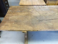 19th C. English Oak Rustic Two-Plank Trestle Refectory Table