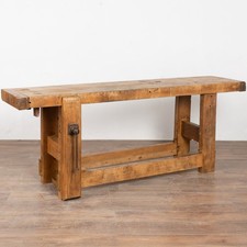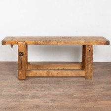 It is the years of constant use revealed in every ding, gouge, stain, and crack that enrich the character of this impressive carpenters' workbench from France. It has one long vice along the left leg which was a traditional structure.