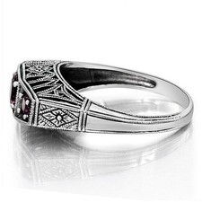 1CT Natural Amethyst 925 Solid Sterling Silver Nouveau Style Ring Sz 6 XB3-4