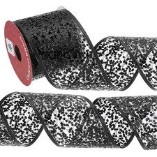 2.5"x 10Yards Glitters Yarn Ribbon Polyester Mesh Ribbon(Sequined Edge, Black)