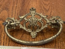 2 Antique Victorian Brass Drop Bail Handle Drawer Pulls Ornate 3” Center Holes