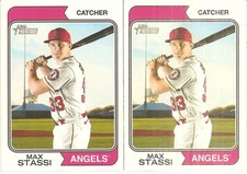 The product is a lot of two 2023 Topps Heritage Max Stassi baseball cards featuring the player from the Los Angeles Angels team. These cards are likely to be manufactured in the United States, providing enthusiasts and collectors with high-quality and authentic pieces from a specific player and team. This lot is perfect for fans looking to add to their collection or for wholesalers looking to bulk purchase sports memorabilia.