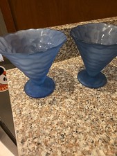 2 Footed Blue Ice Cream Dessert Dishes