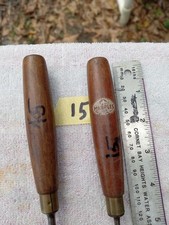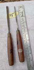 This is a pair of Marples Ving Chisels, made in the United States as vintage original pieces. These chisels are a collectible item for woodworking enthusiasts and are known for their quality craftsmanship and durability. Perfect for woodworking projects or adding to a collection of vintage tools, these Marples Ving Chisels are a unique and sought-after piece for collectors and craftsmen alike. Sizes include one 3/16" and one 1/4".
