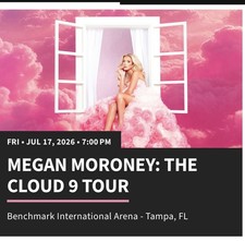 Get ready to experience the magic of country and folk music with 2 Megan Moroney floor tickets for the concert on July 17 2026 at Benchmark Arena in Tampa, Florida. Join Megan Moroney as she takes the stage at 7:00 PM, captivating her fans with her incredible talent and enchanting melodies. These floor tickets will give you an up-close and personal experience, allowing you to fully immerse yourself in the music and enjoy every moment of the show. Get your tickets now for a night of unforgettable entertainment with Megan Moroney. 2 tickets next to each other! Will transfer as soon as payment received. Will transfer to Ticketmaster account.