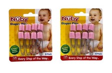 2 Nuby 8 Pack Pink Stainless Steel Diaper Pins Safety Lock Rust Proof 16 Total
