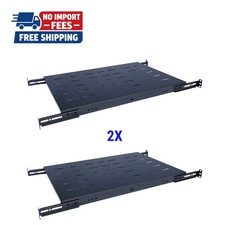 2 Pack 1U Fixed Server Rack Shelf 19in 4 Post Mount Adjustable 24–29in Depth