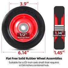 (2-Pack) AR-PRO 6” x 1.5” Flat Free Solid Rubber Wheel 1/2", Black, Metallic