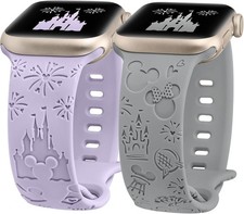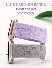 2 Pack Cartoon Engraved Soft Silicone Strap Compatible with Apple Watch 38/40mm