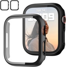 Compatible with Apple Watch Series 9 (2023), Series 8 (2022), and Series 7 (2021) 41mm models. 2-in-1 design featuring a durable PC case with a built-in slim HD clear tempered glass screen protector.