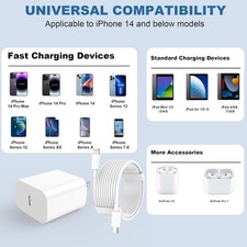 2 Pack Fast Charger for iPhone 14 13 12 11 Pro Max USB-C Wall Charger + 6F & 10F