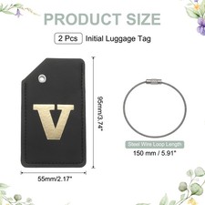 2 Pcs Initial Luggage Tag PU Leather Letter Suitcase Tags Black-Gold (Letter V)