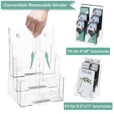 3-Tier Opening with rounded edge design can insert and remove brochures with ease. Easy clean with mild soap and water.,【Convertible Removable Divider】Argvey 3 Tier 8-1/2" x 11" brochure holder with the removable divider can be effortlessly converted into 3 pockets into 6 pockets.
