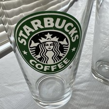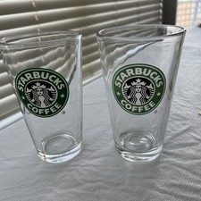 The product is a set of two 16 ounce pint glasses featuring the old Starbucks logo, perfect for coffee and tea enthusiasts. The clear glasses showcase the iconic Starbucks brand and are ideal for enjoying a refreshing beverage while displaying a touch of coffee and tea-themed decor. These collectible glasses are a must-have for any Starbucks fan looking to add a unique piece to their collection.