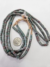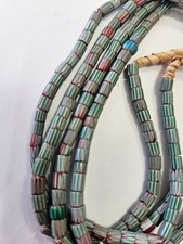 2 Strands Antique Small Venetian Chevron Beads White Core Green Red Stripes 23"