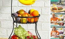 2-Tier Fruit Basket Bowl Stackable Vegetable Storage with Banana Tree Hanger
