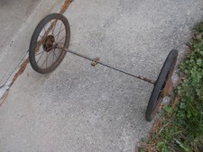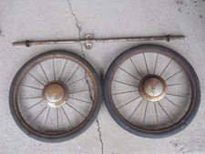 Two 12" spoked wheels & axle, inscription on hub caps STORKLINE