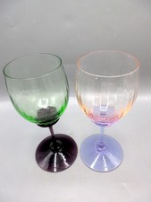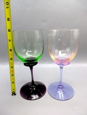 2 VTG John Gilmor Art Glass Goblets Green Amethyst Pink Alexandrite Signed