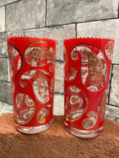2 VTG New Culver Red 24K Gold Paisley Highball Cocktail Barware Glasses NOT USED