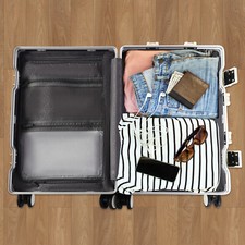 You can rest assured to bring it on the plane without going through check-in procedures. 1 20" Boarding Case. Gross Weight: 4.7kg/10.36lbs. High-quality Material: This product is made of high-quality aluminum, PC, ABS, PU, and rubber, which combines impact and wear resistance to ensure that the product is strong, sturdy, and has a long service life.
